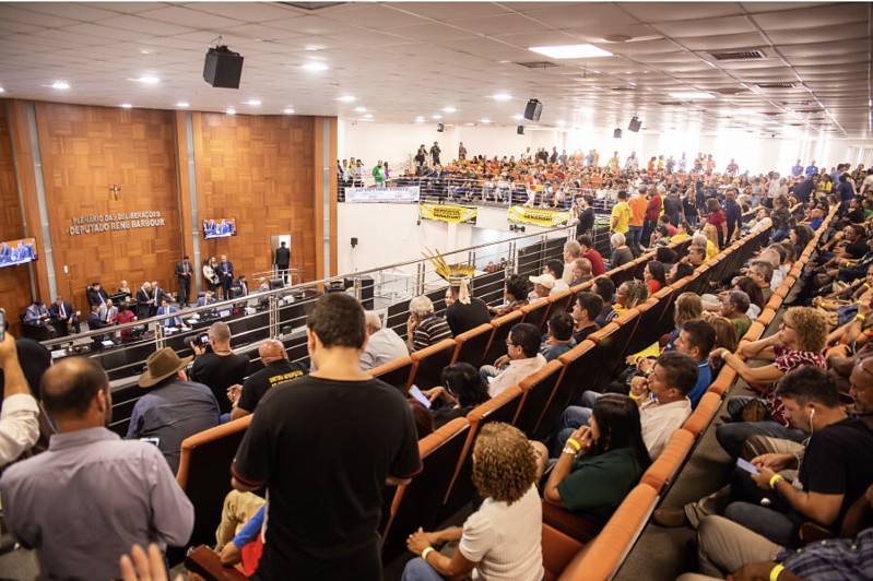 As galerias da Assembleia Legislativa de Mato Grosso (ALMT) foram ocupadas por servidores públicos estaduais nesta quarta-feira (14), durante sessão ordinária, em uma mobilização pela votação do projeto de lei do Poder Executivo que trata da Revisão Geral Anual (RGA) e pela retomada das negociações sobre percentuais não pagos em anos anteriores. As informações são da jornalista Itimara Figueredo, da Secom-ALMT.